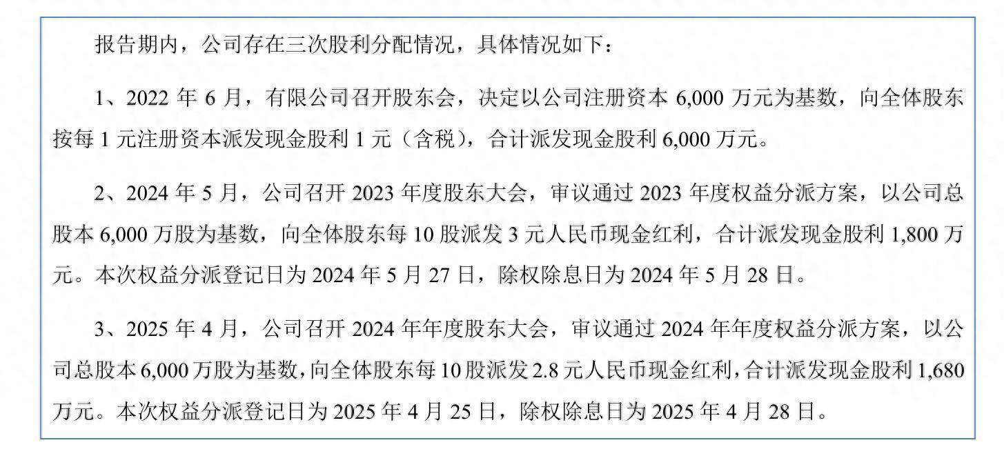 此外,招股书显示,文峰光电报告期(2022年至2024年度、2025年上半年)内存在三次现金分红,合计派发现金股利约9480万元。按照持股比例计算,公司3名实控人或分得9300万元。