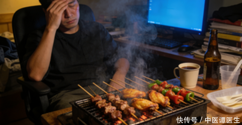第三种不良行为,就是饮食偏燥、经常熬夜。很多人平时偏爱吃烧烤、油炸食品、辛辣小吃,这些食物吃多了,会让身体里产生“热气”,慢慢耗伤肺津。再加上经常熬夜,身体得不到充分休息,新陈代谢变慢,肺部的自我调节能力下降,肺津流失得更快,双重作用下,身体的抵抗力变弱,稍微不注意就会引发风热,出现喉咙疼、咳嗽等症状。