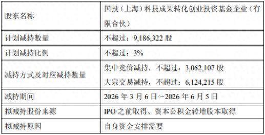 2月4日,富创精密(688409)公告,近日,公司收到股东国投创业基金发来的《减持股份计划告知函》,因自身资金安排需要,股东国投创业基金拟通过集中竞价和大宗交易的方式减持不超过9,186,322股的公司股份,减持比例不超过公司总股本的3%。