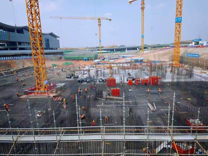 据负责施工的简投集团相关负责人介绍,目前一标段主体结构施工已完成,正在进行二次结构及装饰装修施工;一标段北区正在进行主体结构施工,工人们主要进行钢筋绑扎和混凝土浇筑作业;二标段区域正在进行土方开挖和桩基础施工。