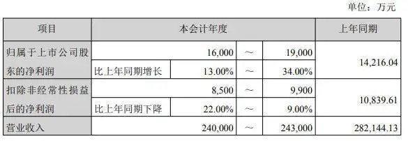 公司预计2025年实现营业收入24亿元至24.3亿元,上年同期为28.21亿元;归母净利润1.6亿元至1.9亿元,同比增长13%-34%;扣非净利润预计8500万元-9900万元,同比下降9%-22%。